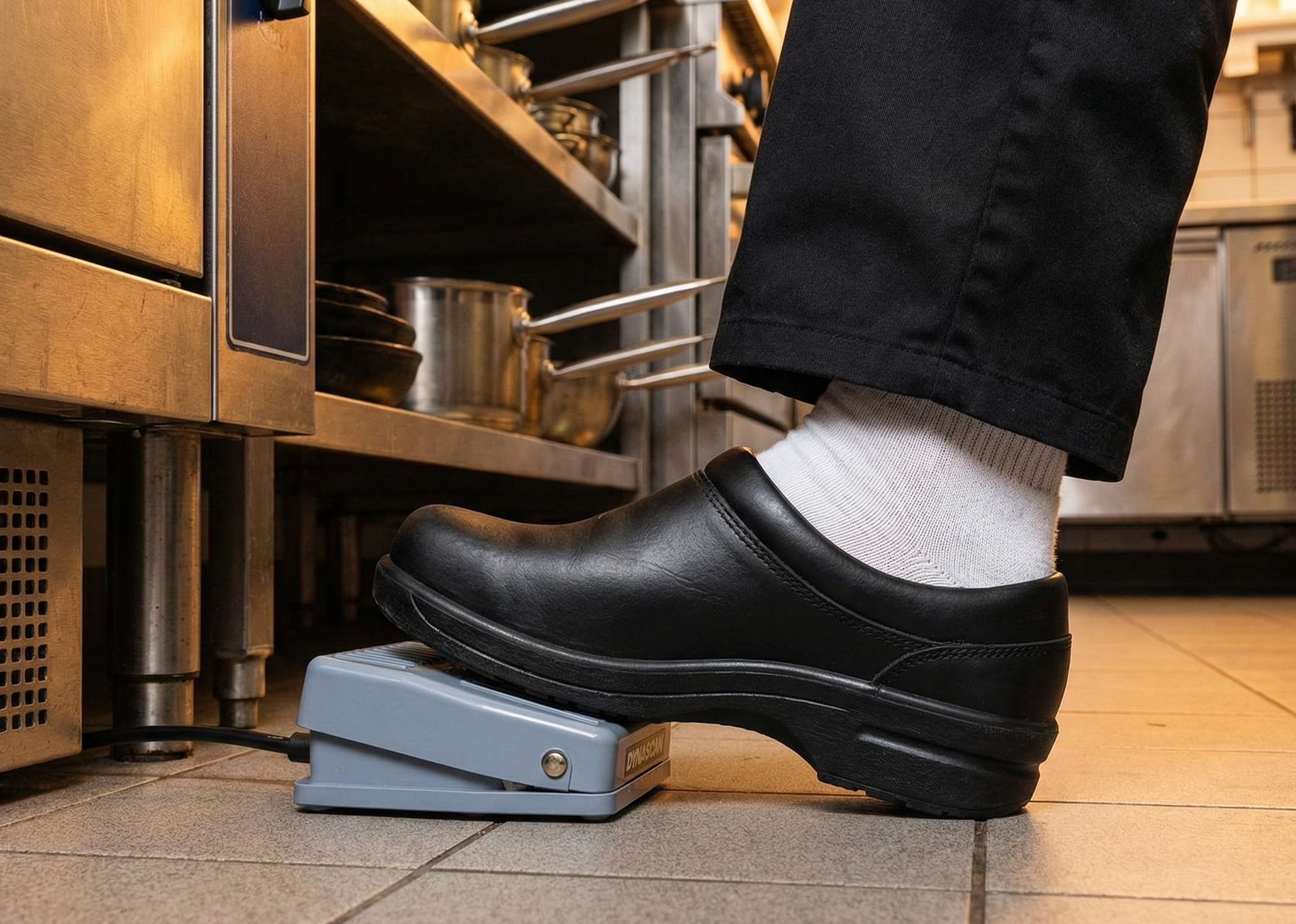 La gran innovación del CHEF-1 es la inclusión de un pedal de pie industrial. Este accesorio permite al chef activar la transmisión de forma instantánea sin necesidad de tocar el equipo. Es la solución ideal para:
